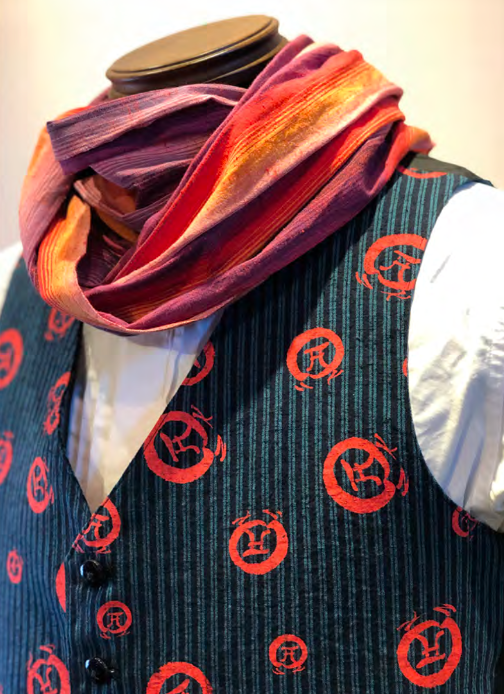 遠州綿紬は、浜松市三ヶ日にある初生衣神社で祀られている織姫様に由来しています。この衣神社では、平安時代末期から約850年前の時代から絹を織り、伊勢の皇大神宮に毎年奉納される神に捧げる衣服として御衣と呼ばれる絹織物が織られてきました。NIPPON KIMONO FABRICSのマークは、この衣神社の鳥居をブランドマークとして採用しています。