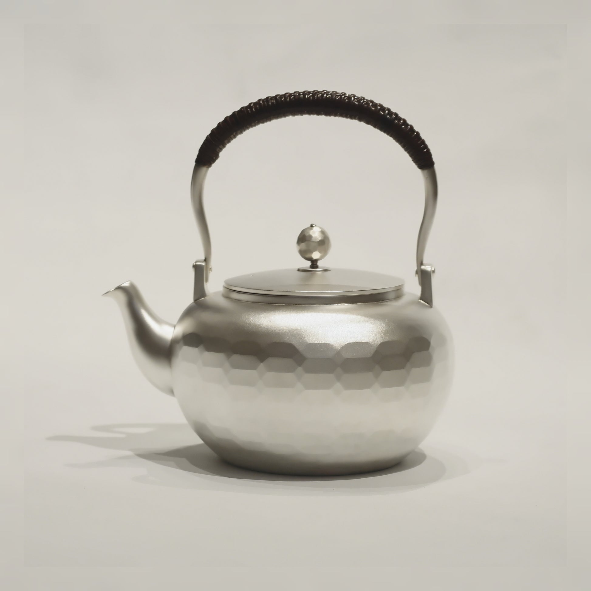 純銀製菱亀甲紋湯沸 宗達作(オーダーメイドになります)