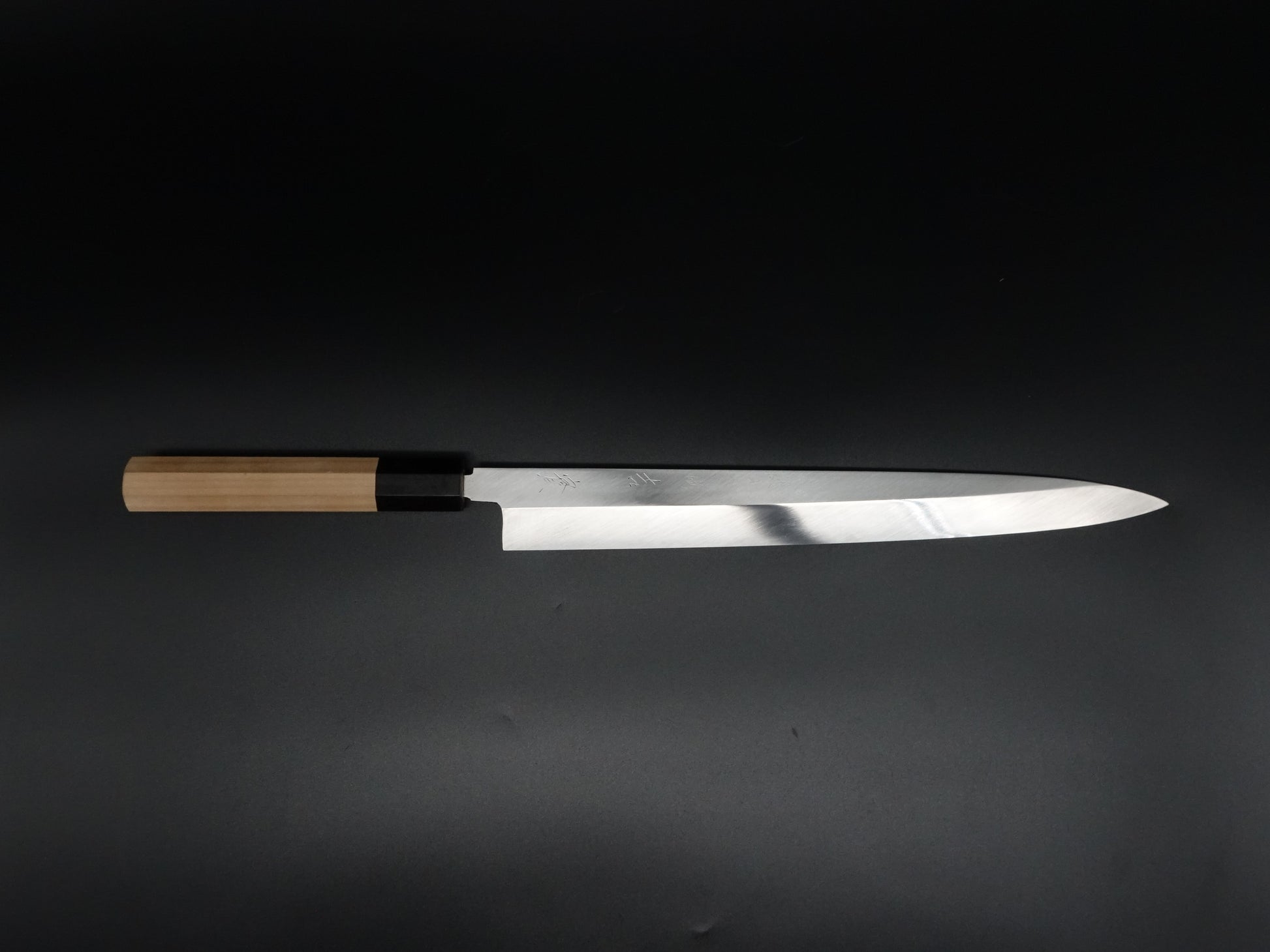 また、霞(地金と鋼の鍛接する技法)の包丁と違い、地金と鋼の境目が食材に触れないため、切った断面がより美しく仕上がると言われています。