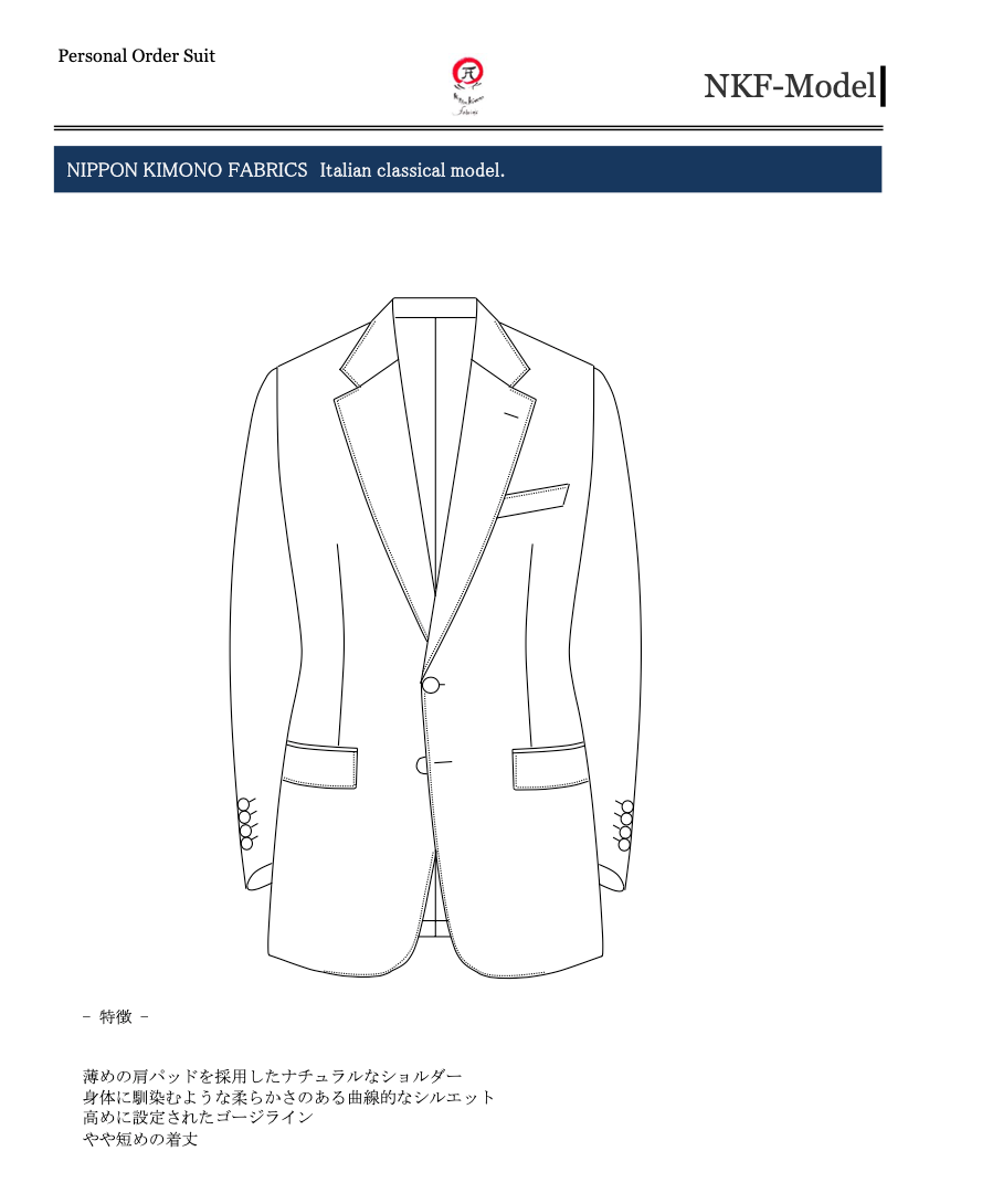 2釦 ノッジドラペル シングルジャケットセンターベント(NK-FA-42B)
